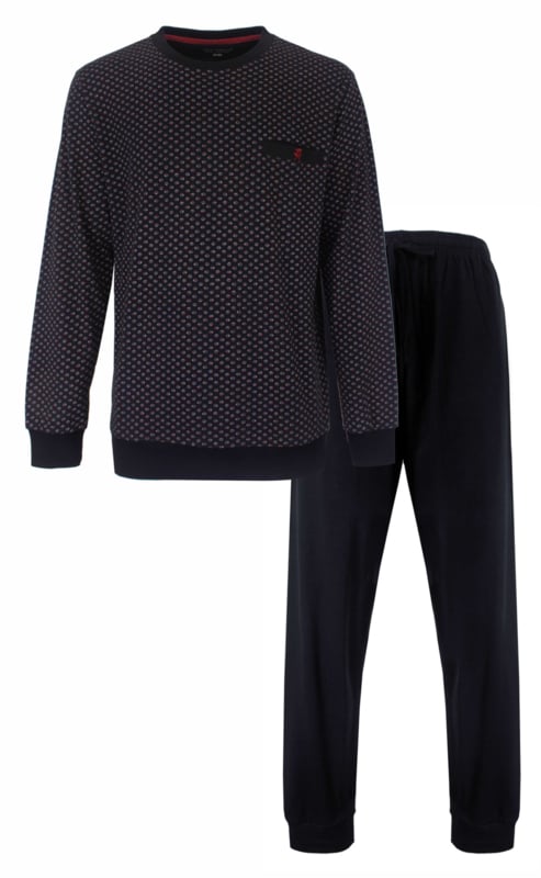 Mooie Paul Hopkins heren pyjama gemaakt van 100% gekamde katoen. De rekbare jersey kwaliteit zorgt voor een aangename pasvorm. De geprinte top heeft een ronde hals met een rekbaar boordje Op de borst bevindt zich een borstzakje. De bijpassende lange broek broek is voorzien van praktische zakken en een handig aantrekkoord. Deze pyjama is speciaal ontworpen om zowel comfort als stijl te bieden.