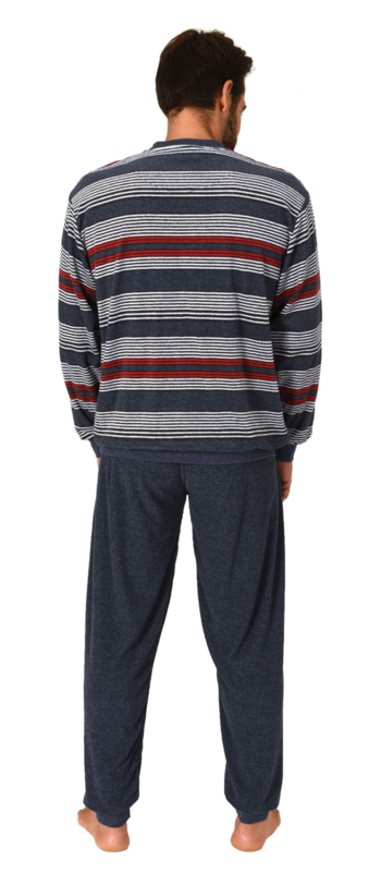 Mooie heren badstof pyjama gemaakt van 60% katoen en 40% polyester, van het merk Normann. De pyjama is afgewerkt met elastische boorden en manchetten. Deze badstof pyjama zit lekker comfortabel en is heerlijk warm.